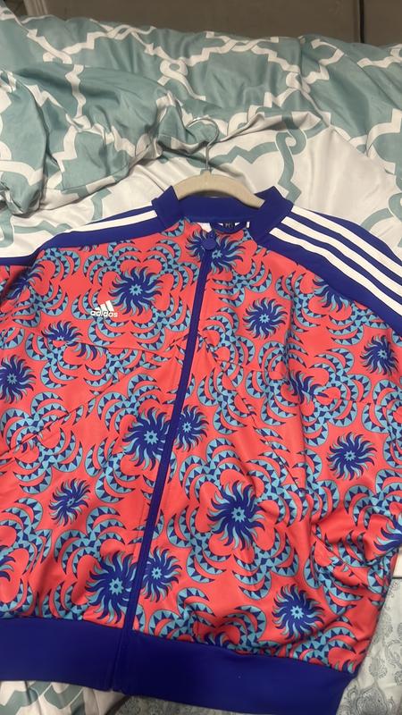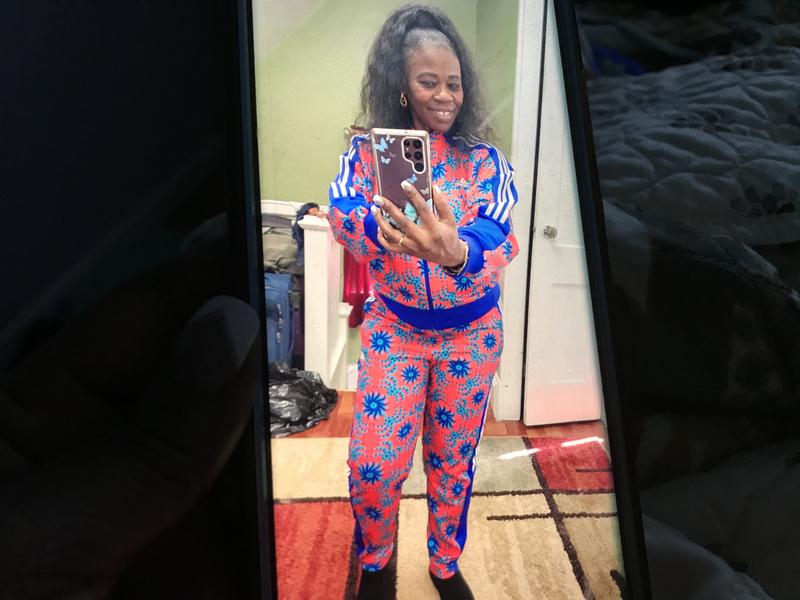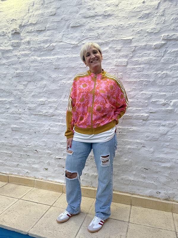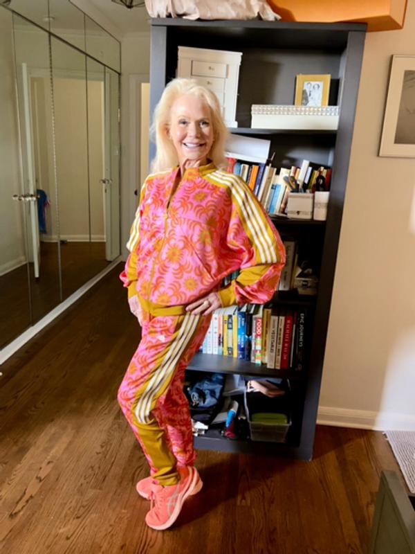 This jacket is absolutely stunning! The print and placement of stripes is unique and the color is brilliant. Fits true to size. Fabric is a nice weight and the sleeves are cut a little looser for comfort and style. I’m not sure if I can get away with adding the pants but if I were in my 20’s or 30’s, I would be adding the pants to my wardrobe!