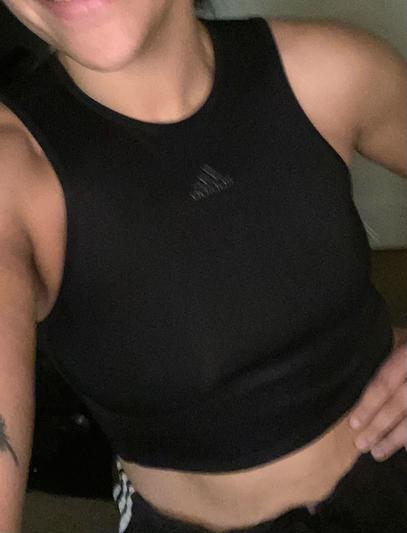 Love the top - definitely need sports bra. Size xs was sold out and the size s is a little large for me. I will keep it; a sports bra will hopefully fill the extra room. The length meets the it’s matching shorts waist band.