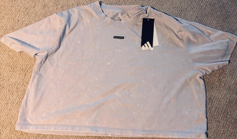 I ordered the Adidas Women's Train Essentials Boxy Workout T-Shirt in Powder Plum, but was extremely disappointed. The shirt I received has ‘Under Armour’ printed on it along with Adidas tags, the print is completely faded, and it’s not even the size I ordered.