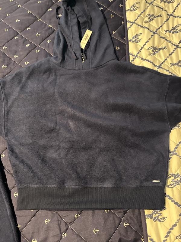 It’s super soft but at same time feels weird. The hoodie is short and constantly i have to pull it down. Personal it’s uncomfortable.