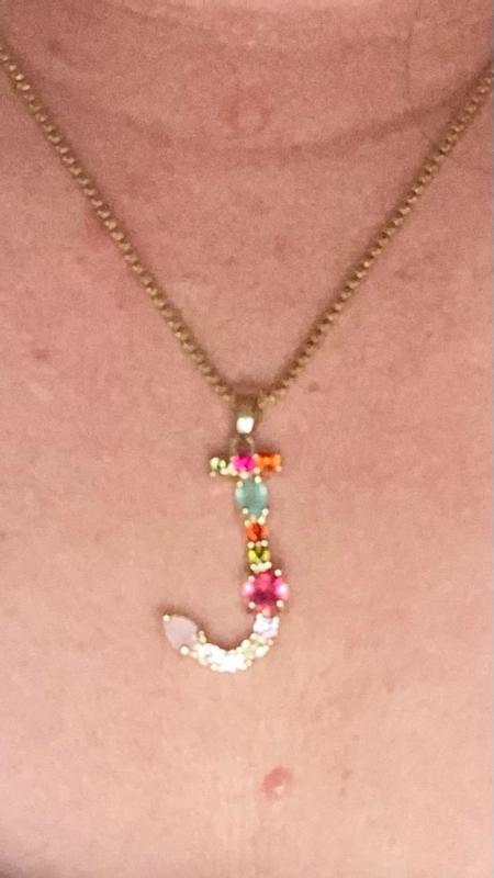 I love the initial charm necklace that l recently received. It was not as large as l had expected but still l do like to wear it. Nice chain with a wearable length chain. Will wear with various outfits.