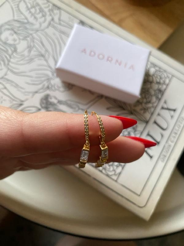 14k Gold-Plated Triple Rectangle Crystal Charm Huggie Hoop Earrings
