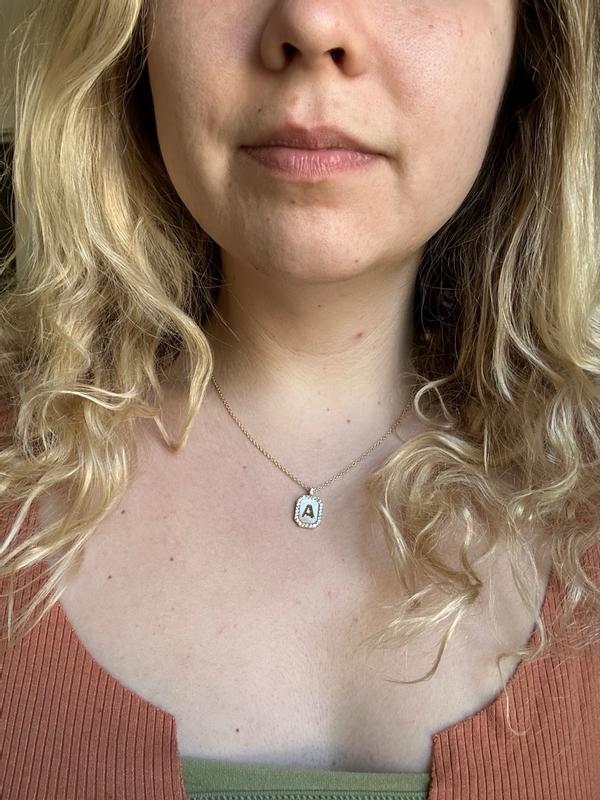 Cute pearly initial necklace with a nice adjustable chain. I like it