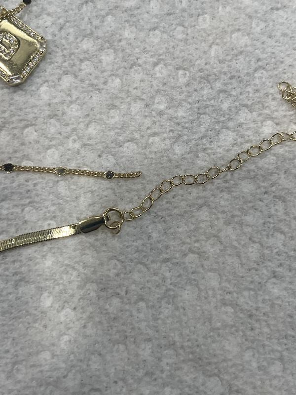 Gold Pave Tag Pendant and Herringbone Chain Initial Necklace Set