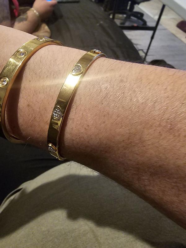 Gold Tarnish Resistant Cubic Zirconia Hearts Stacking Bangle