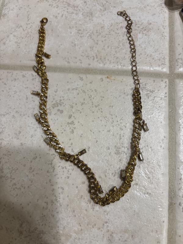 Gold-Tone Curb Chain Baguette Dangle Choker Necklace, 12-1/2" + 4" extender