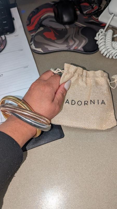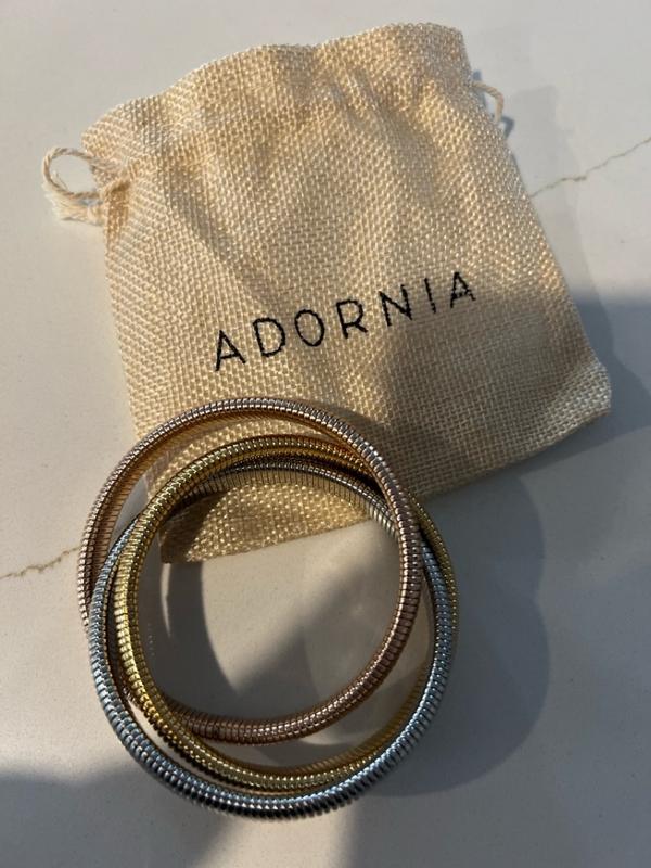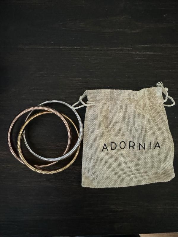 This bangle trio is so pretty! Very substantial too feels heavy and expensive. I have small wrists and it's a little big on me, but it doesn't feel like it will fall off so I am happy with it