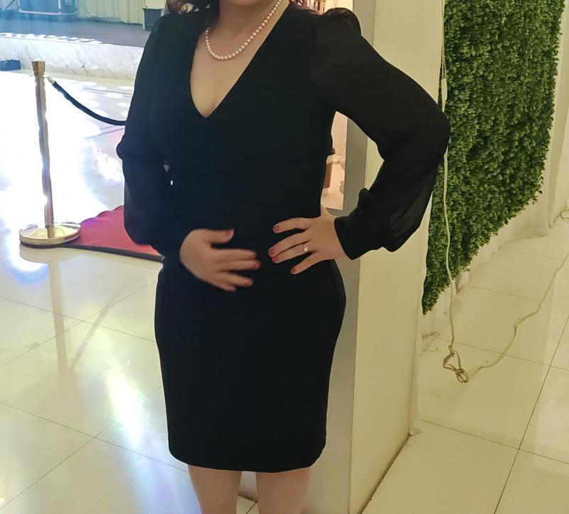 This is the black dress you need in your closet. The fit of this dress is flattering. It gives you a nice hourglass figure. The sheer sleeves are a nice touch if you are looking for something to cover your arms.