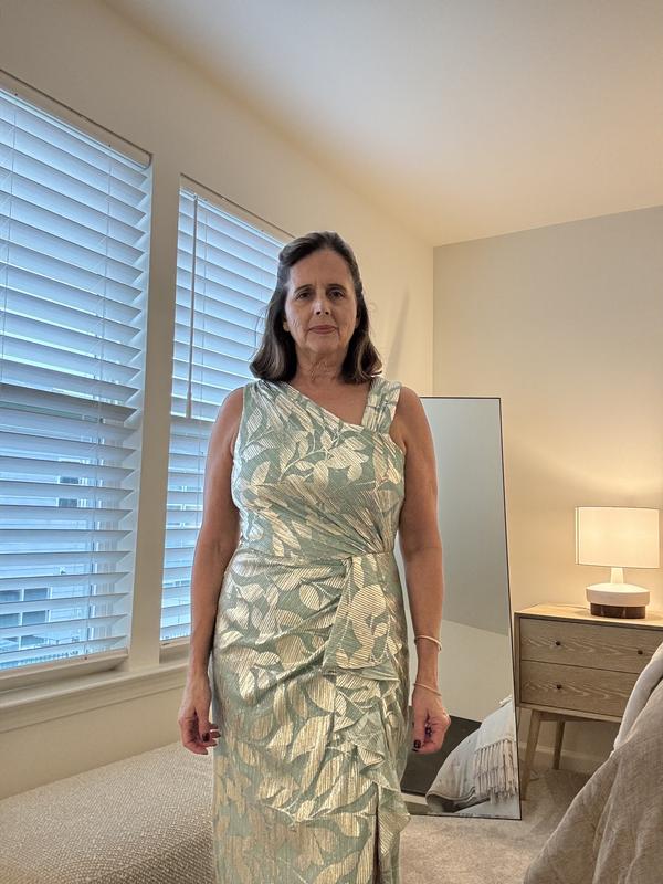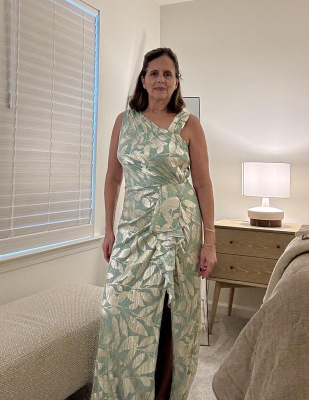 Beautiful dress and very comfortable. Light and airy and easy to pack because it really doesn’t wrinkle. Very easy to move around and dance in. Didn’t need any alterations except for the length. Bought a size 2 and it fit well for 5’6” 110 lbs. was not tight at all