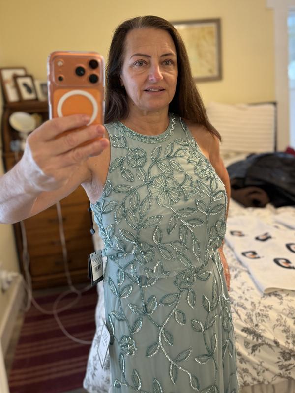 Gorgeous dress! The sequins are stunning without being overdone. Light and comfy for a summer wedding. I am too short waisted, so the bodice didn’t fit me.