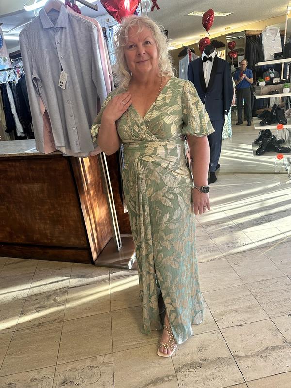Women's Foil Leaf Flutter-Sleeve Draped Gown