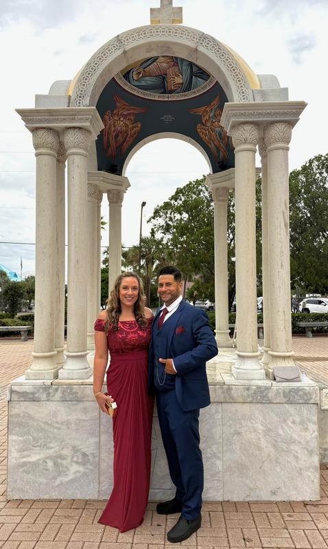 This dress is absolutely gorgeous, the different textures adds such beauty and I love the way it draped in the midsection down the front. I felt beautiful and confident and receive so many compliments.