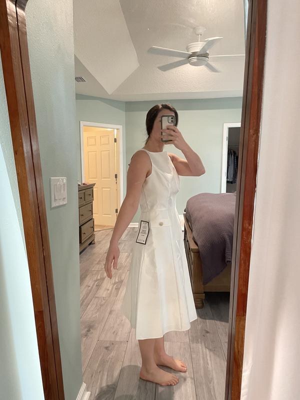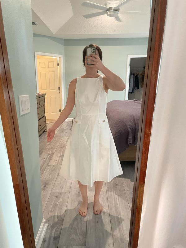 This dress was more bright white than ivory so I was surprised by the coloring. I liked how it had pockets. It did not fit well for my body shape that is a bit over weight so I returned it