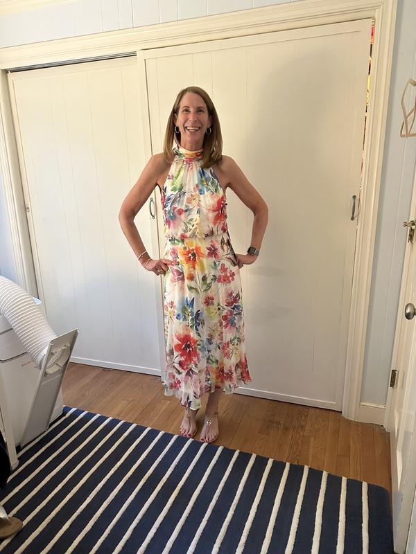 This is a beautiful dress. Fits true to size. i am so excited to wear to my nieces outside wedding in July heat.