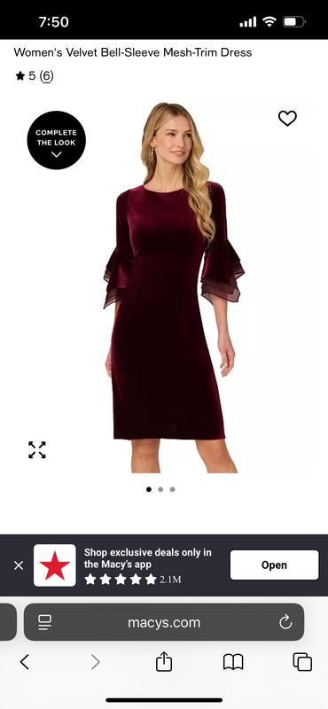 Women's Velvet Bell-Sleeve Mesh-Trim Dress