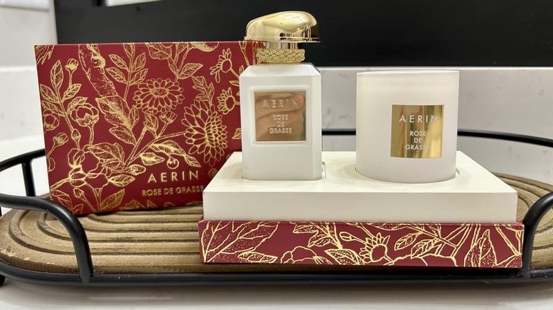 This AERIN Rose de Grasse Gift Set comes in a beautiful red box adorned with golden designs, making it perfect for gifting. It includes a full size, 1.7-ounce, bottle of Rose de Grasse Parfum and a coordinating, 2.3-ounce, votive candle. The white and gold of the packaging looks elegant, especially displayed in the collectible box. The fragrance itself, is the true highlight of the show. It is the most “true rose” scent I’ve worn. While some might think that would mean the aroma is flat, one note, or stagnant, that is not at all the case here. Rose de Grasse is both bold and soft, like roses themselves. It wears incredibly well and lasts on skin and clothing from morning to night. The candle is a perfect translation of the parfum and has a great throw. This gift set would be great for fans of the fragrance and for anyone who loves roses and true florals. I highly recommend this luxurious holiday set. I received this product for free from Estee Lauder for testing and review purposes.