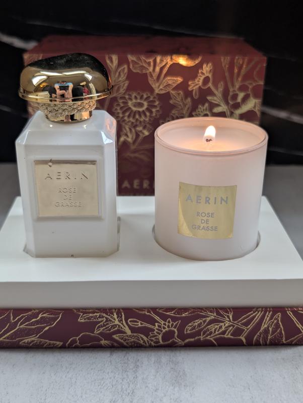 What a beautiful set! Everything about it is elegant and beautiful, even the box. It comes with the 1.7 oz full-size Rose de Grasse Parfum and a nice candle with the same scent. It is floral, but more sophisticated. It can also be very versatile though so it's really a parfum that can be used on many occasions. On my clothes, it stayed the true scent for about 24 hours after which it slowly faded. It's actually a pretty good value too because the parfum bottle of this size alone is more expensive so you basically get the candle as a bonus. Can't wait to keep using it. I received this product for free from Estee Lauder for testing and review purposes.
