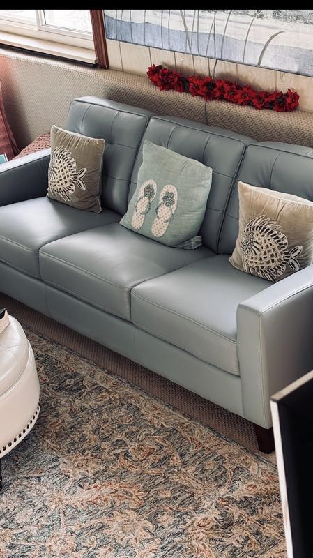 Beautiful! Quality leather and finishes. This sofa will last a lifetime. Could not be happier with this purchase!