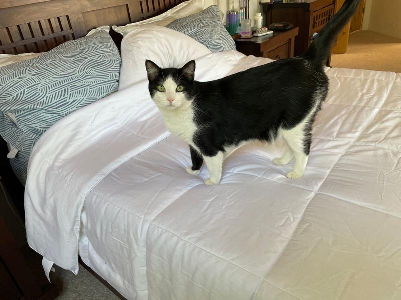 Love the blanket, just the perfect weight and combined with our heated mattress. It does shift around a whole lot in the cover so that does bother me but the comfort the blanket gives kinda makes up for that.