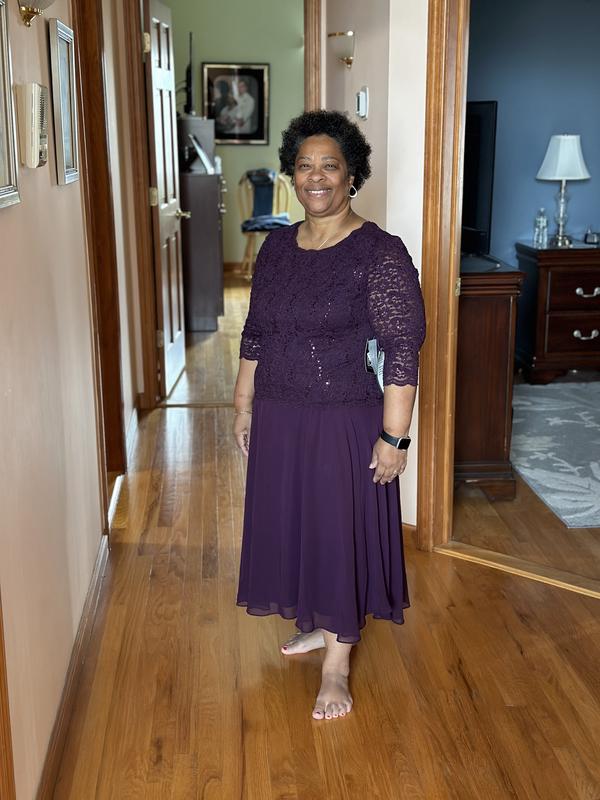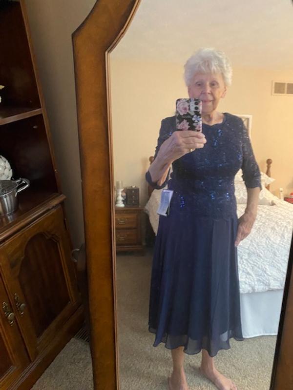 I am returning this dress even though I really like it. It made me feel like I was the mother of the bride or groom. I needed a dress that said I was a wedding guest. It is true to size if you are a 16 and are pear shaped with big boobs.