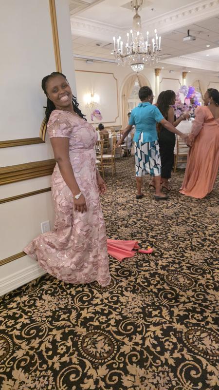 I will wear this as the mother-of-groom dress at my son's wedding later this summer. I'm 5'9" and no longer interested in wearing 3-4 inch heels that would be required for so many other formal dresses that are approximately 60-61 inches long in my size. This dress is 57 1/2 inches in length and just skims the floor so I will be able to meet my DIL's desire for floor-length while wearing a flat. The color is not as quite as vivid as what shows in the picture, which is fine with me.The cut is flattering, and it is fully lined with double lining at the bust, but no built in bra.