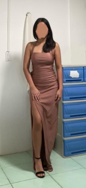 My order came relatively early. It fits me well, although it still touches the floor even with heels on (I'm roughly 5'6 with heels), but I don't mind. The color is the same as the photos stated as well!