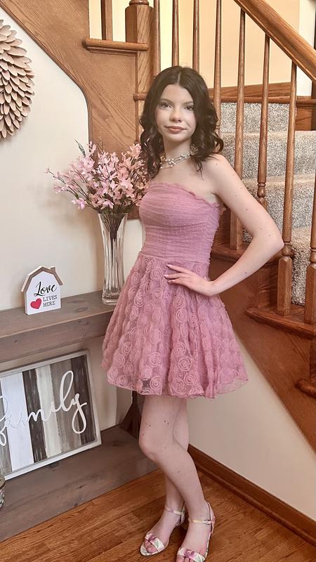 This dress is perfect in every way… My daughter is very tiny and this dress xxs fit like it was made for her… The cups in the dress was added bonus.
