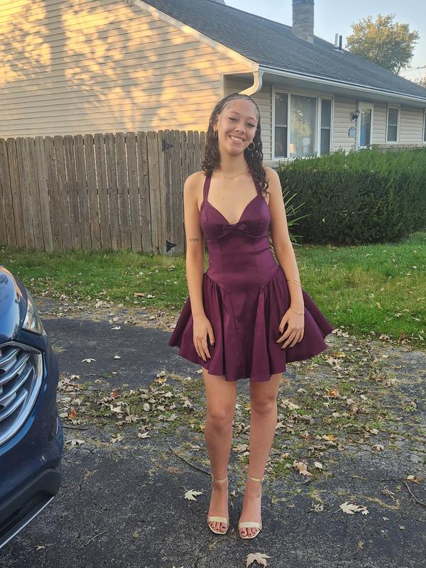 - Fit & Flare: Fitted through the chest and waist; flared and flowing skirt