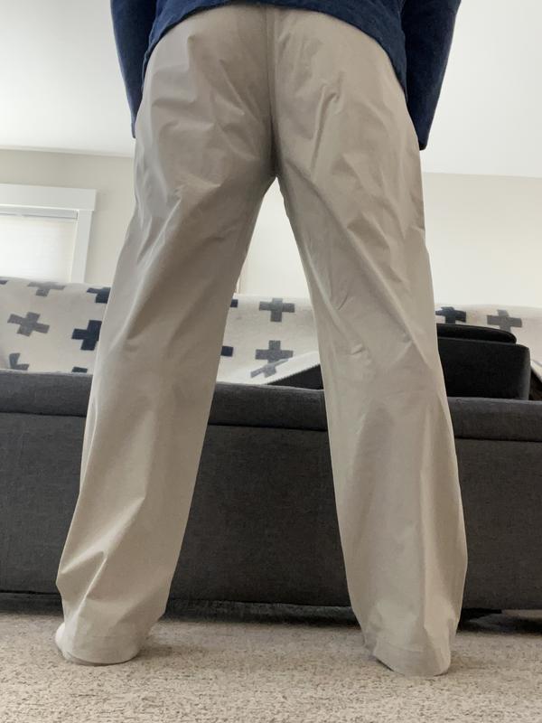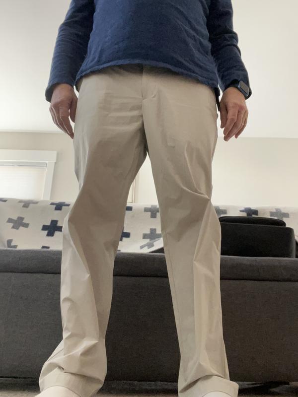 I was kinda impressed with these pants. They look good and fit pretty good too. They’re just a tad bit longer than I would like but still fit well with shoes on. Very thin and light weight . I like that they have a built in string but also look nice with a belt. They’re gonna be a great travel pant which is why I purchased them. I like them so much I bought a pair of navy. Very happy with this purchase.