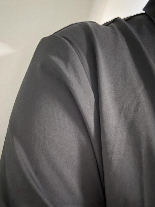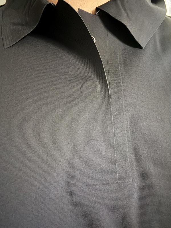 The shirt fits me very well. I love the material that makes this shirt. 76% nylon and 24% spandex. It’s not the softest but not the roughest. It has great stretch and I like the laser cuts at the ends. The buttons are plastic snap buttons. It also doesn’t get wrinkly like other shirts. Need more clothing made of this material %age.