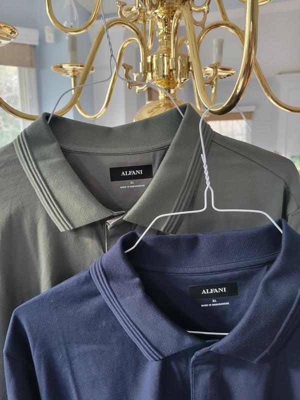 I bought 2 different colors in this Alfani polo shirt sz XL following chart. This polo shirt fits true to sz 100% cotton,goes well under blazer or cardigan. I am submitting pic of both for colors reference, as neo navy looks as dark navy. Good quality for price range.