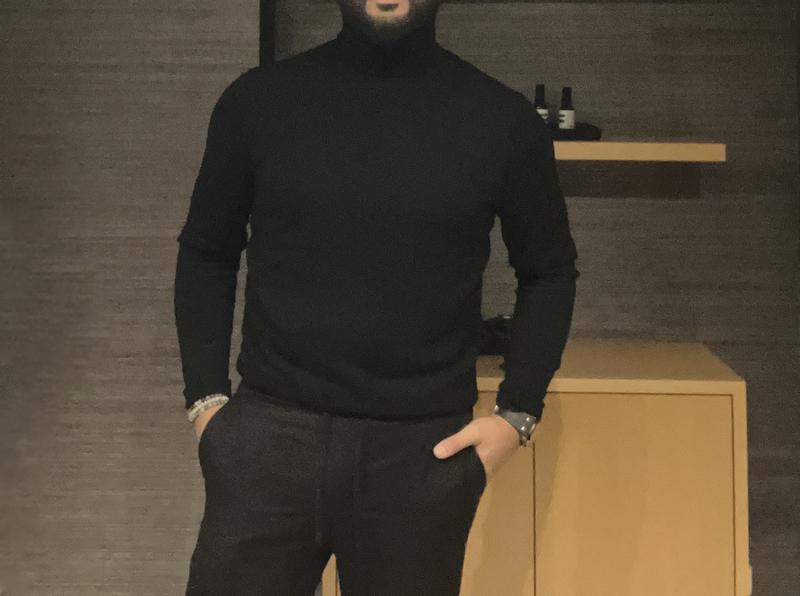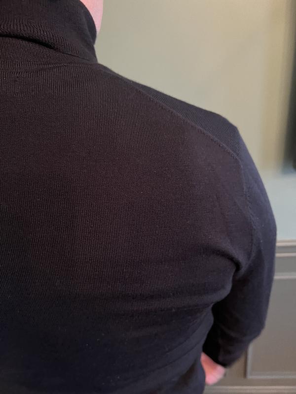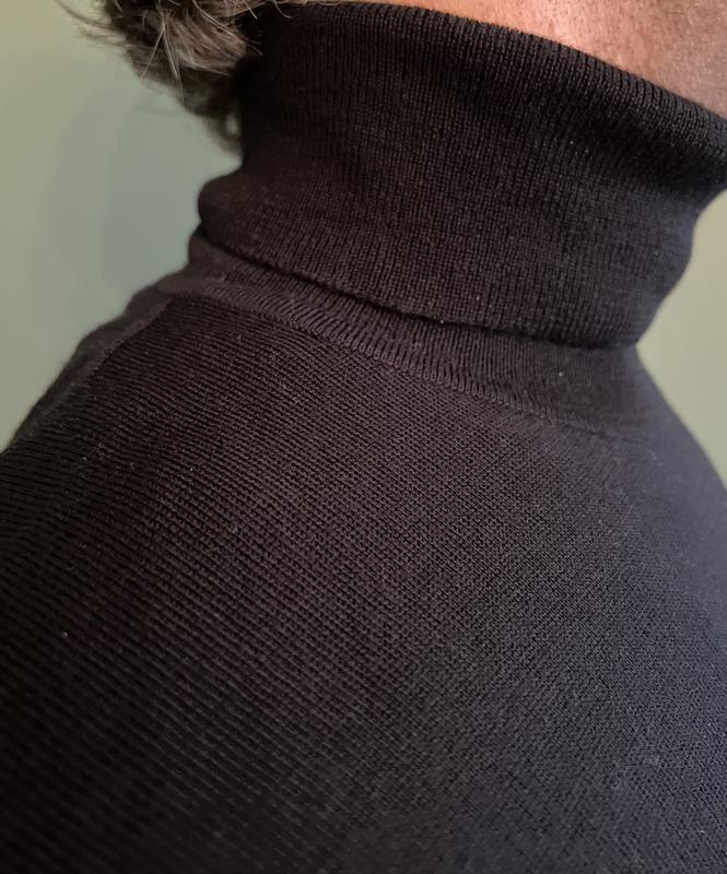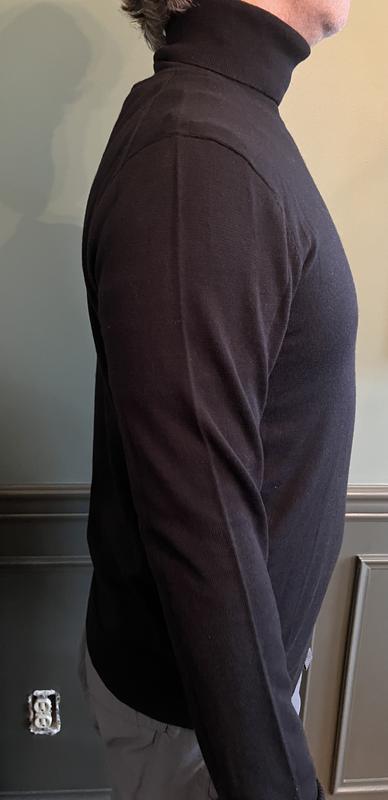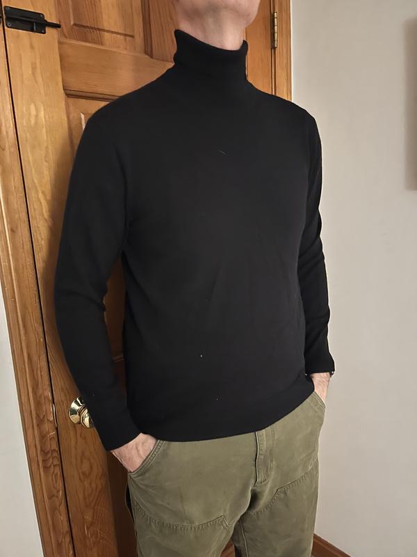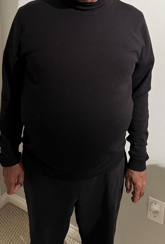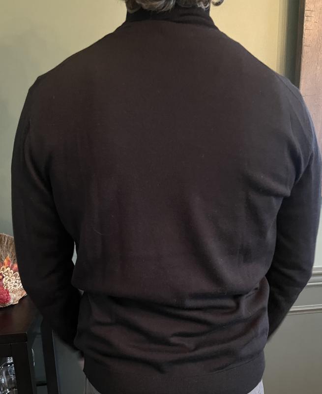 Beautiful sweater. My husband loves it; very soft and comfortable, drapes nicely.
