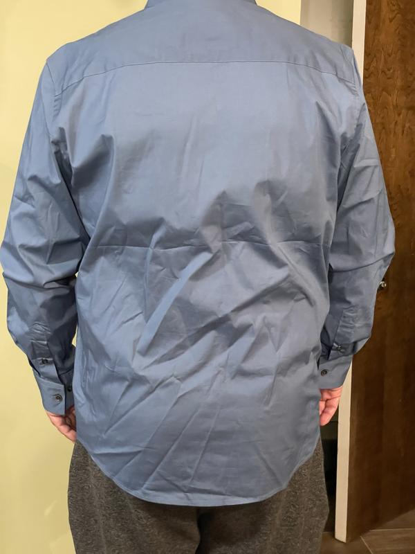 After washing and drying as directed the sleeves were shorter. Also wrinkle free material look bad even after an ironing. Would not recommend this shirt. Looked good before washing but now I can’t return it.