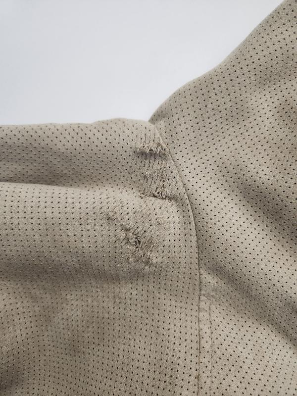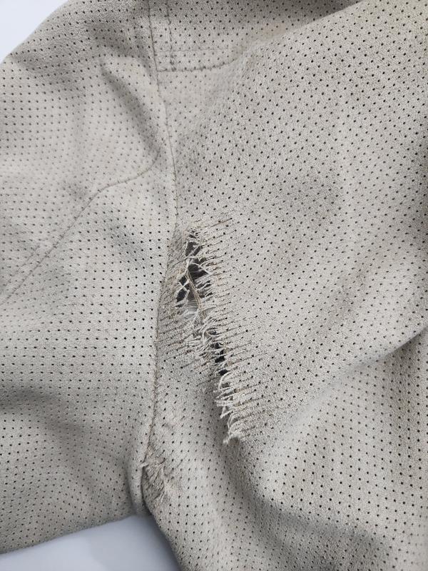 I bought this on final sale, was really happy with it, before I received it I read a review that said it ripped with regular wear. I didn’t believe it but the same thing happened to me. I didn’t notice till I took it off. Just went out it didn’t get caught on anything, I didn’t wrestle with it on. Literally normal wear no reason for it to rip. Feel like I was scammed idk how the material could be so cheap. Wore it only twice. I guess that’s why it was final sale. Really cheap material.