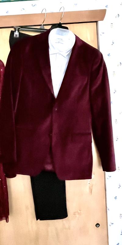 Comfortable relaxed fit. Shoulders fit right and length of jacket was on par. Love the color and feel of the material. Velvet is smooth and color rich and deep. Got this to wear to a color themed party (red wine color). Can be dressed up or dressed down for a more casual look.