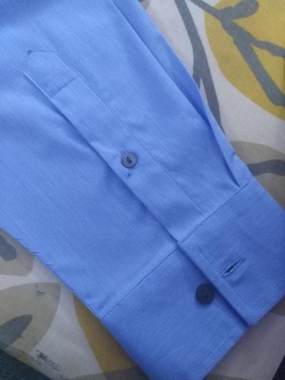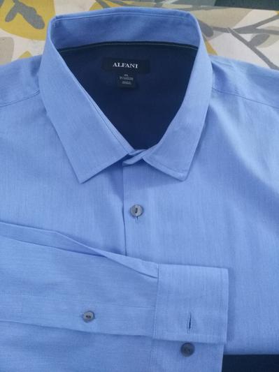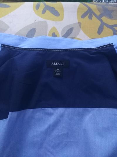 Received in a torn bag with sleeves rolled up, food on front and tags loose in bag. Clearly was worn before. Very disappointed that Macys let this ship out this way.