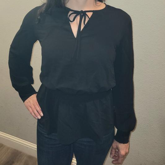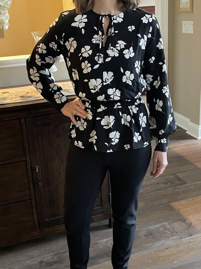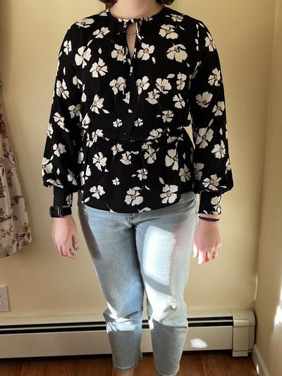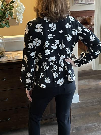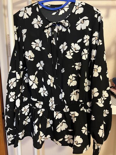 This is a very cute blouse! I got compliments on my first day wearing it. The cuffs are a little bigger than expected, but I don’t mind. The fabric was also really easy to steam wrinkles out of.