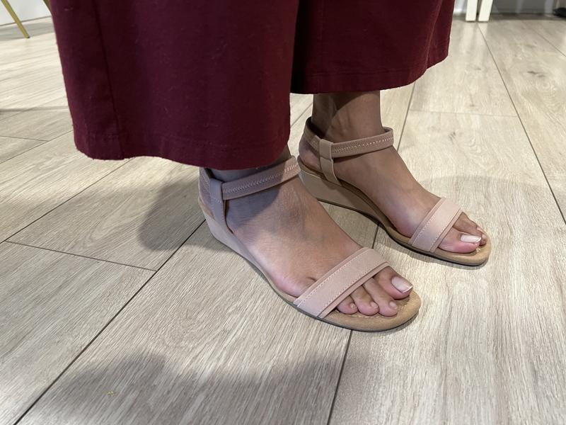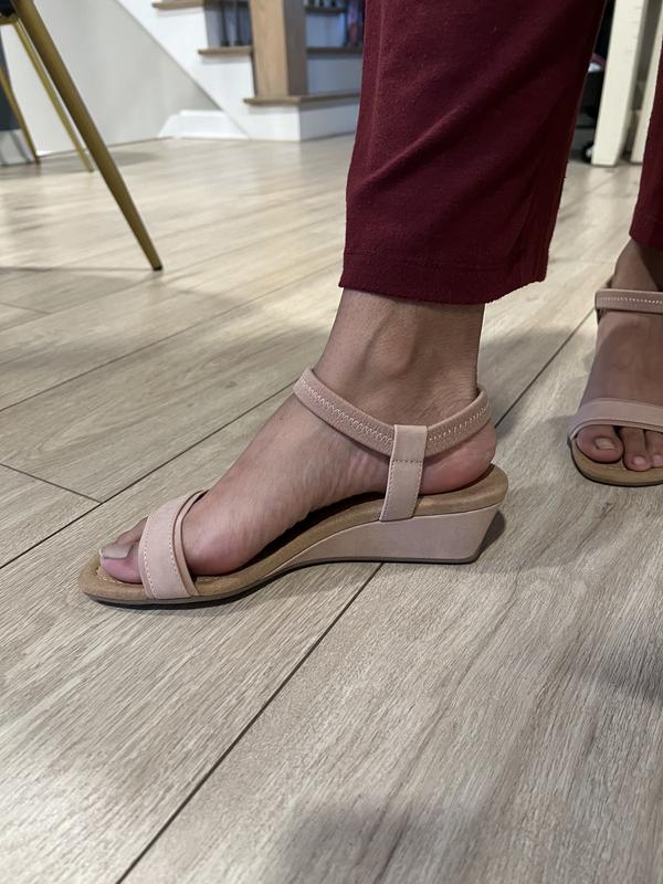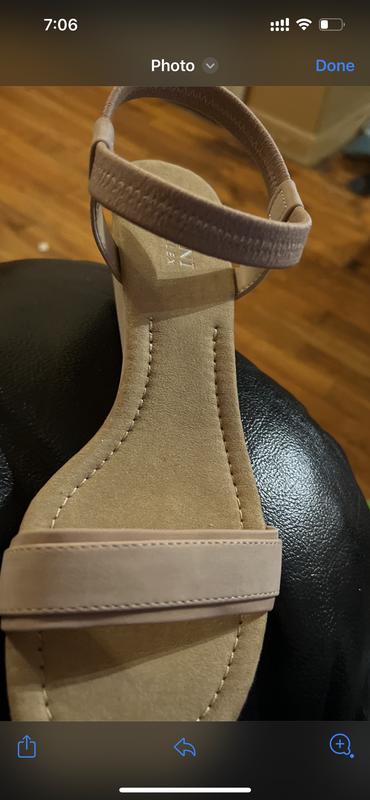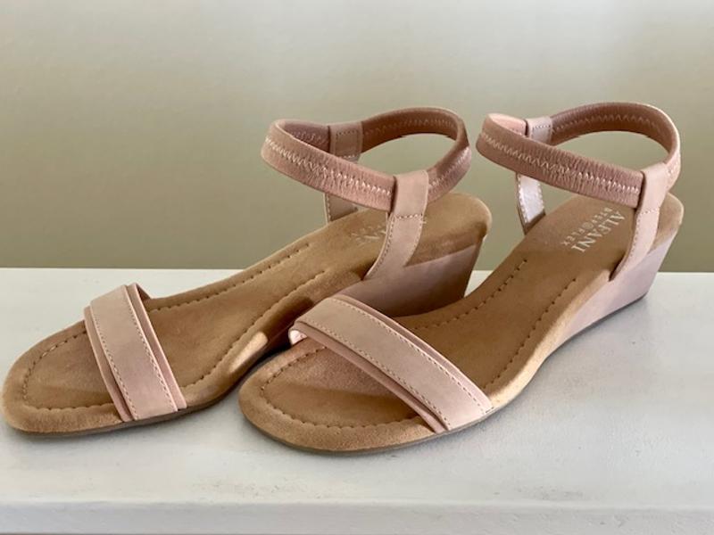 I love Alfani shoes. I have bought several sandals from them in the past. Each shoe has a different ankle elastic measurement. Some are too tight while this one has the ankle elastic too loose. My only complaint is that it needs to be consistent.I started buying these shoes because the arch support fits me so well. I can be on my feet all day and no foot pain.