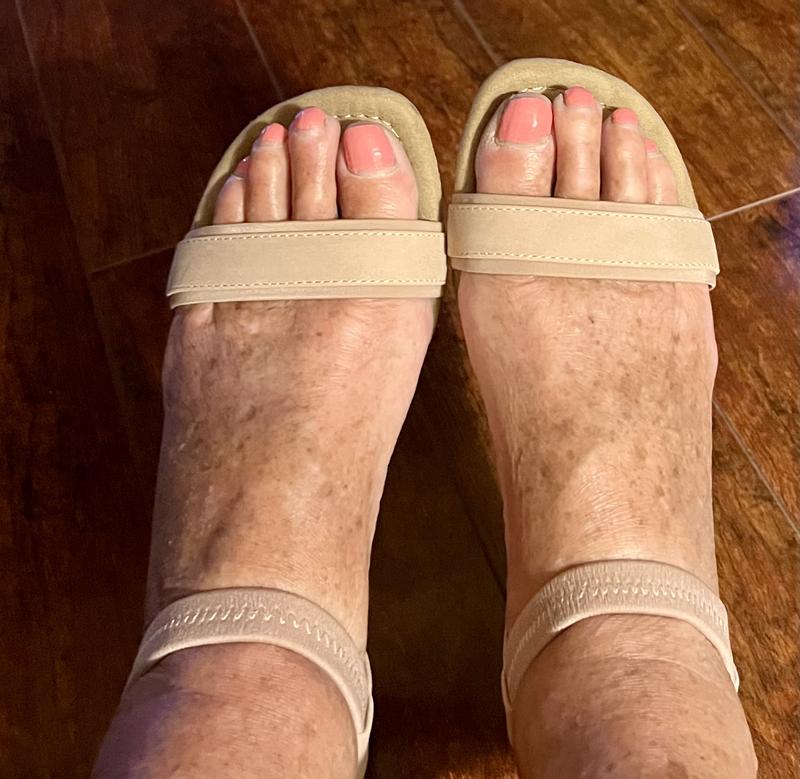 Very comfortable sandals at a great price. I have them in taupe color as well.