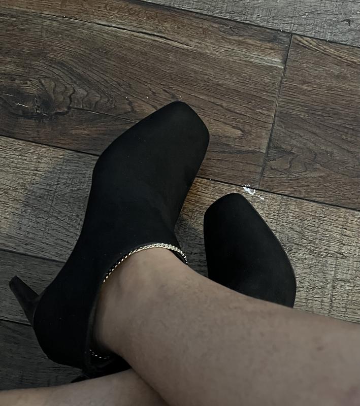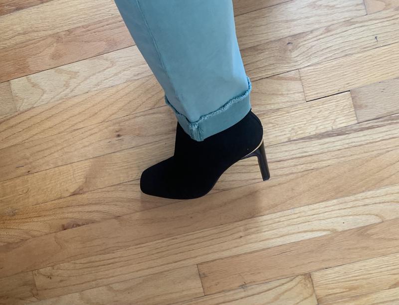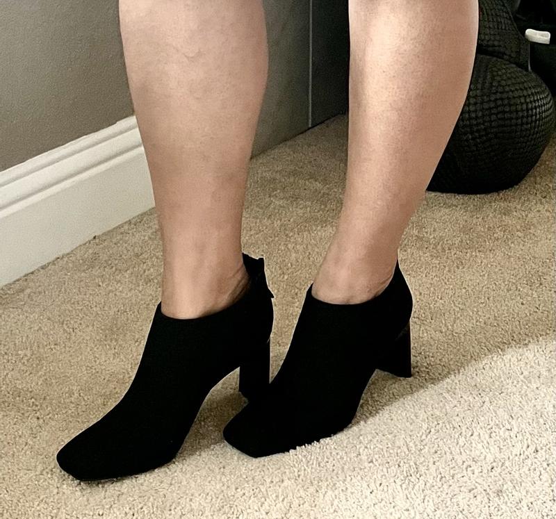 These are really cute but, for me, they're too short on top. Very few of the right colored leggings or pants are long enough to not show skin. And that is unattractive to me. They are pretty comfortable for their heel height.