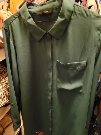 Material is lovely. Very dissappointed as the botton hole on the right sleeve tab is misplaced and extremely tight. It makes it very difficult to button. Due to the slippery nature of the material the sleeves do not roll up and "stay put". Added to this is I purchased it at full price, and then view it marked down. Simply tired of returning products, so it hangs in my closet...