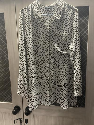 I love this beautiful long blouse. It hangs perfectly over any body imperfections and just looks classy! I wish there were more prints to choose from.
