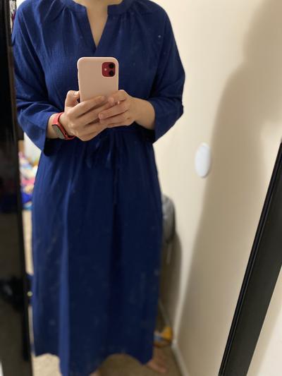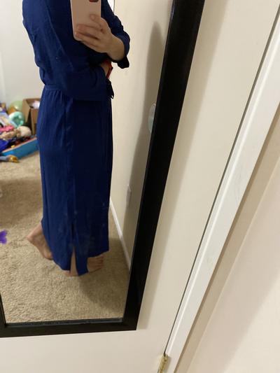I purchased this dress because I was going to my nephew gender revail party and I wore Blue because I was team boy. I really like the fabric and the loose fitting dress.