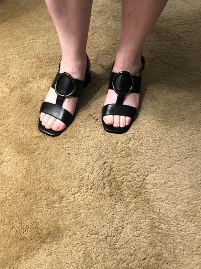 I have the white pair. The ring doesn't sit curved like the picture, but it's still a stylish sandal. Purchased these in the fall so won't be able to wear them until next summer.