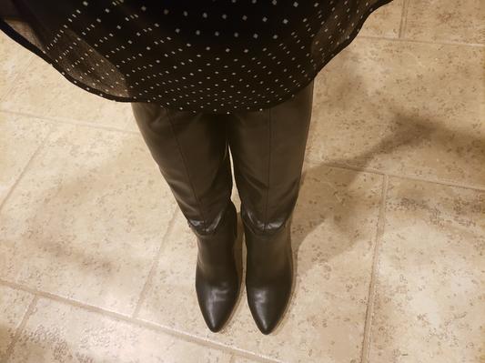 The calf shaft is too big for my skinny legs. I’ll wear them with a maxi dress.