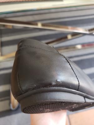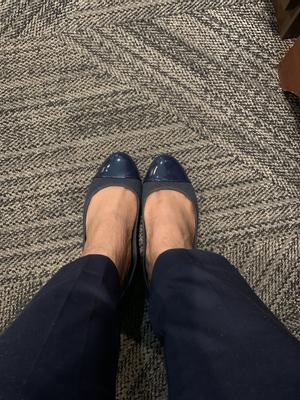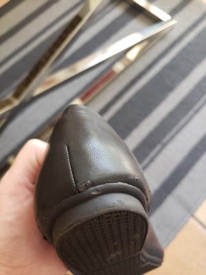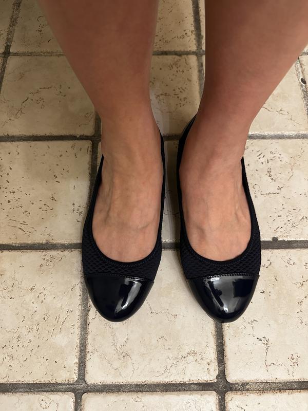 The mesh is like tennis shoes and don't go with the shiny toe and heel. Too narrow.