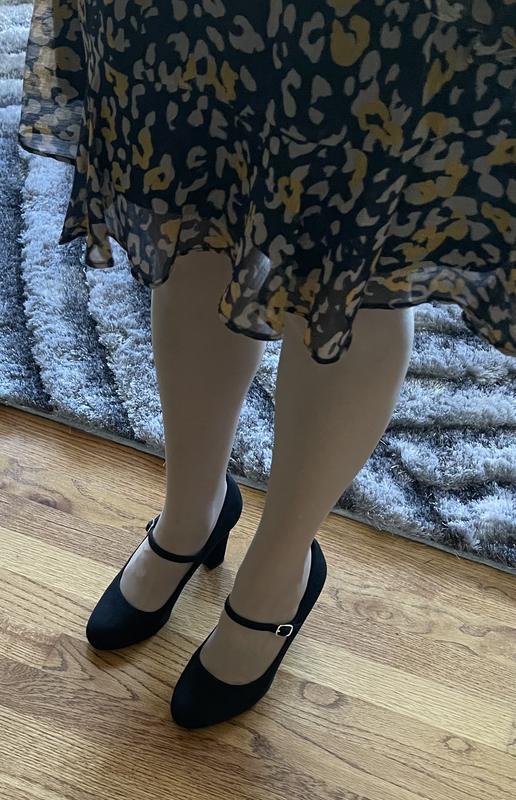 I found the Lifestride mary janes that look almost identical much more comfortable. These toes felt rigid and the strap across the foot didn't prevent my heel from slipping out.