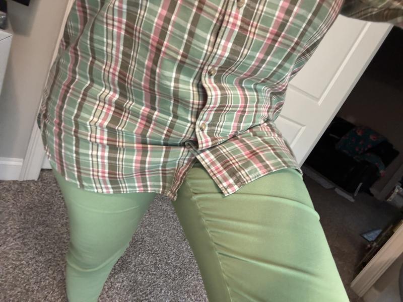These pants are soft and comfortable. It could be used for work or play. It is true fit to size. The color I got was like a lime avocado green material stretchy and moves with you. pants are tapered and length ends at the ankle