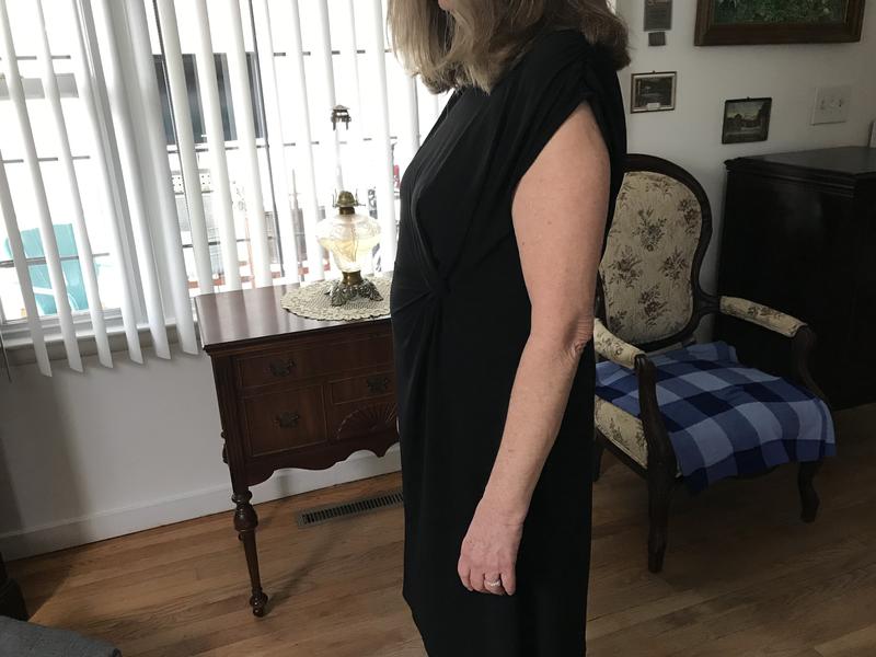 There was too much extra material in the front. It gave the appearance that the dress was ill-fitting, although it was the appropriate size. I suspect the dress would be more flattering for a less curvaceous figure so that the fabric was fitted and highlighted the twist-front.