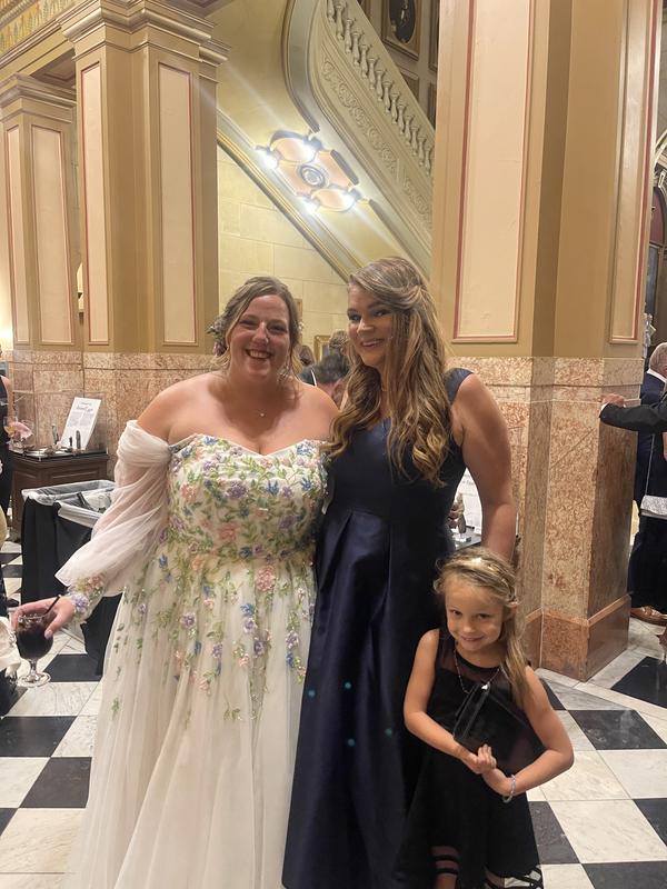 The dress is stunning. However, it is so difficult to get on that I had to take some stars off. For some reason, there is a HUGE seam halfway up the zipper (so the zipper is vertical, and that seam is horizontal, making them perpendicular to each other) that makes the dress take forever to get on! It literally involves extra arms and position changes. That isn't to knock the fit--it's comfortable, it's flattering, and I promise I am not just trying to squeeze myself into a too-small size. The four, yes FOUR people who have made attempts at helping me get it on will testify that there is plenty of slack in the fabric, and it's not an issue of not having enough room or fabric to pull the sides of the zipper together. It just seems priced a bit too highly for a "designer" that left a big, chunky seam in the middle of the dress, directly in the way of actually putting it on, rather than minimizing its appearance, bulk, and blockage. Overall, it was worth it, but allow at least 10 minutes and make sure you have1-2 friends or family nearby to fight your zipper with you.